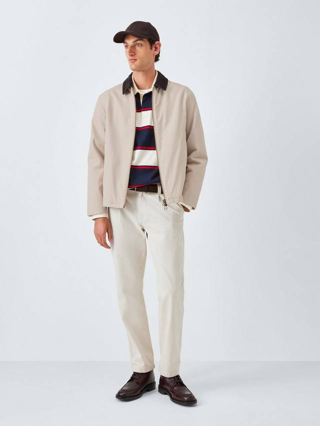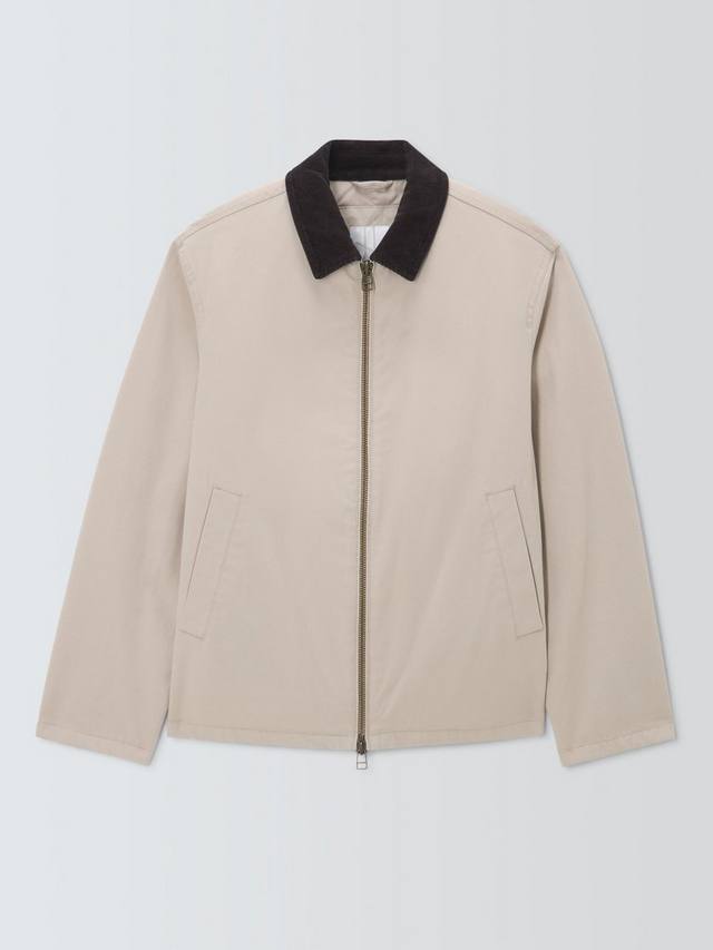Куртка-бомбер из дышащего и прочного хлопкового полотна с контрастным вельветовым воротником. Двусторонняя молния спереди и два боковых прорезных кармана.