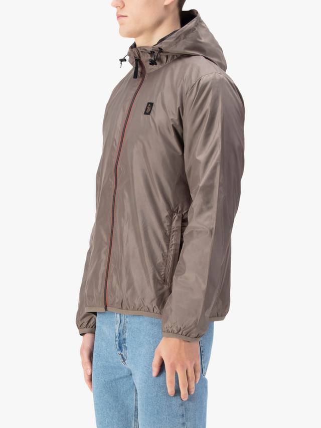 Она изготовлена из лёгкого нейлона с дышащей сетчатой подкладкой и застёжкой-молнией спереди, украшенной полосатой тесьмой. Куртка оснащена двумя незаменимыми нижними карманами на молнии и дополнена культовым тканым значком бренда в виде головы льва на левой стороне груди.