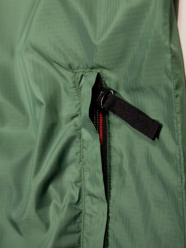 Она изготовлена из лёгкого нейлона с дышащей сетчатой подкладкой и застёжкой-молнией спереди, украшенной полосатой тесьмой. Куртка имеет два незаменимых нижних кармана на молнии и культовый тканый значок бренда в виде головы льва на левой стороне груди.
