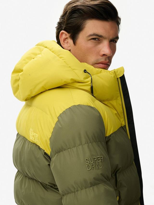 Эта стеганая куртка на молнии отличается достаточной утеплительностью, капюшоном и уникальным дизайном с цветовыми блоками, который дополняет стиль достойным внимания качеством.