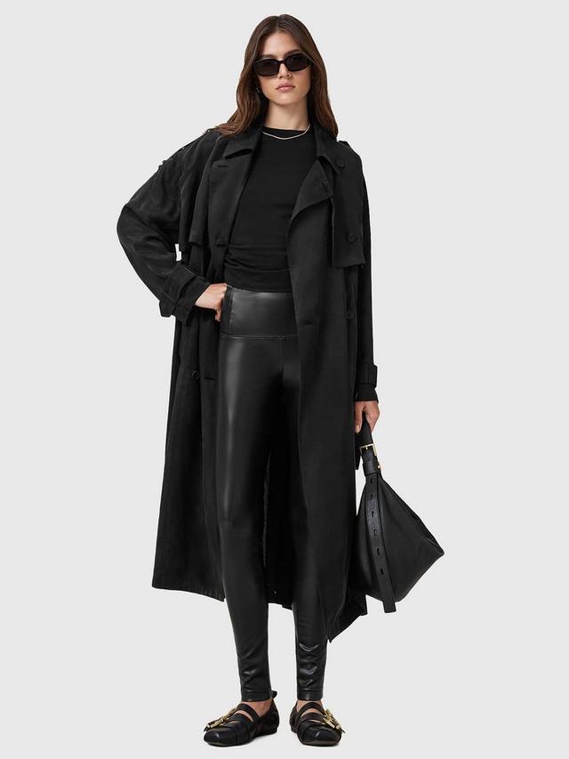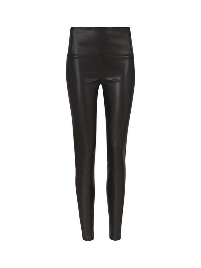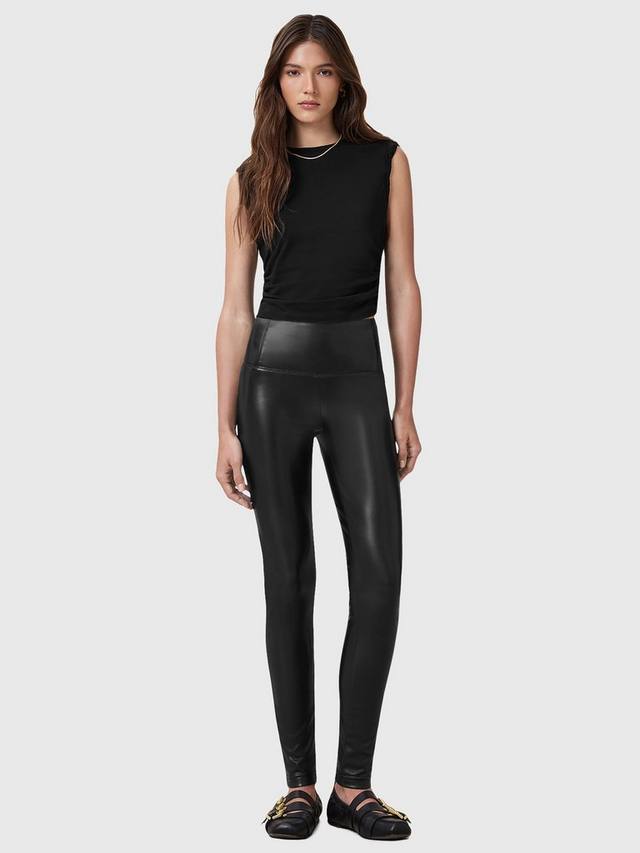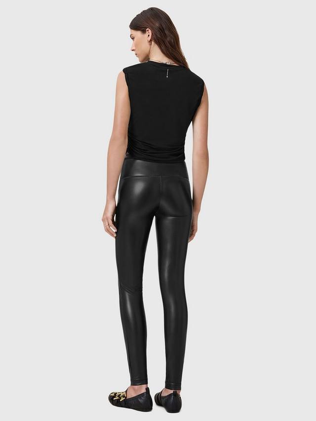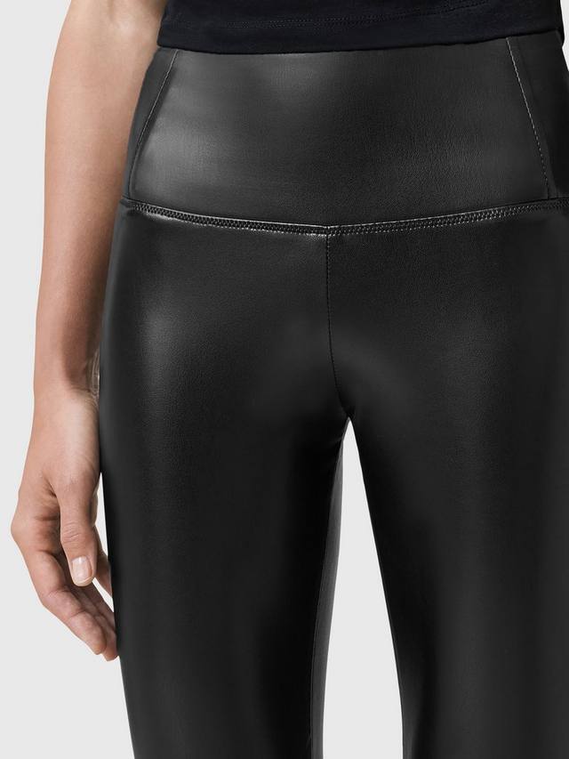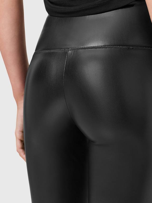 Пара облегающих леггинсов из искусственной кожи с элегантным дизайном.