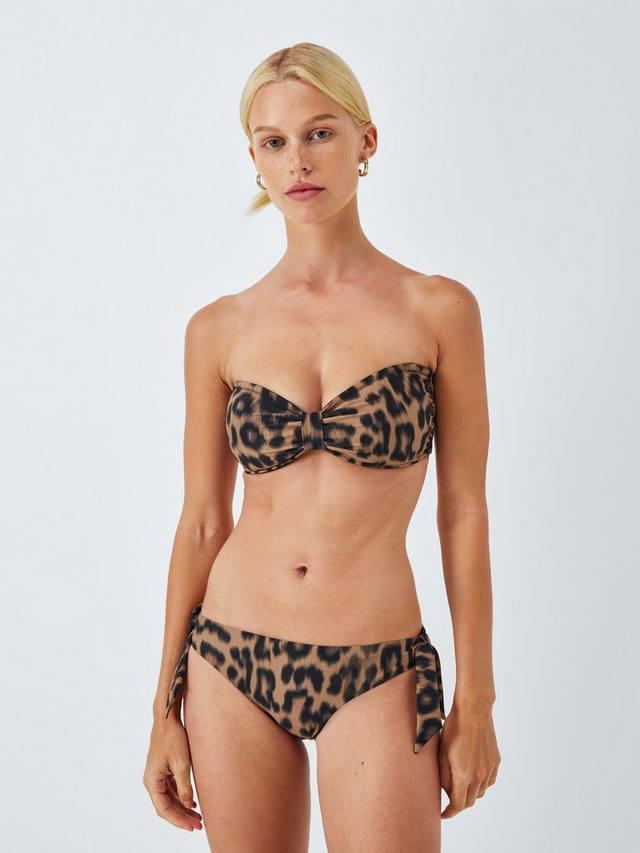 Лиф-бандо с принтом в виде вечнозеленого леопарда, со съемной тонкой бретелькой через шею.