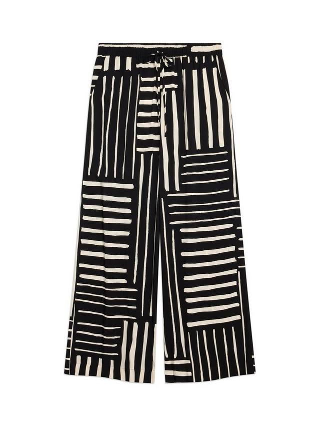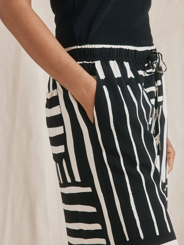 С удобным эластичным поясом сзади и завязкой, с эффектным принтом в полоску в стиле пэчворк. Спереди защипы и боковые карманы. Эти брюки-кюлоты украсят любой образ, обеспечивая максимальный комфорт и функциональность.