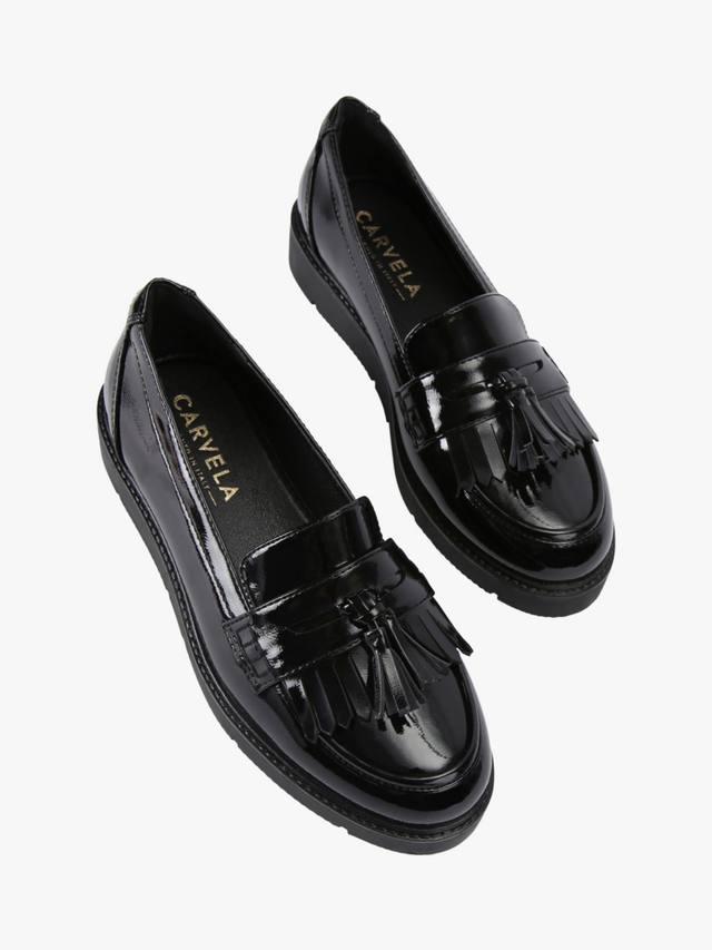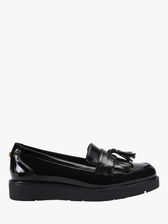 Лоферы Sky Tassel без застежек имеют верх из искусственной лакированной кожи с эффектной кисточкой на закругленном носке.