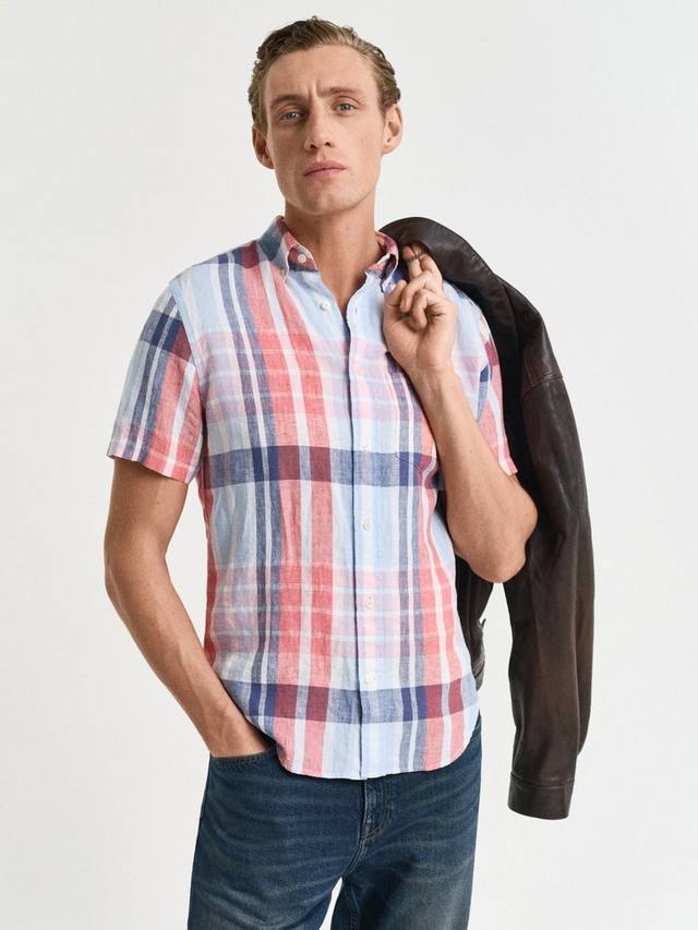Льняная рубашка Regular Fit в клетку Madras GANT, Red/Multi