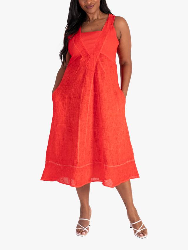 Это классическое летнее платье выполнено из роскошного льна и дополнено ребристыми вставками на лифе, что делает его незаменимым предметом гардероба для теплой погоды! Это платье без рукавов с квадратным вырезом, двумя карманами в боковых швах и перекрещивающейся деталью спереди идеально подходит для летних дней.