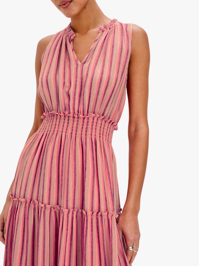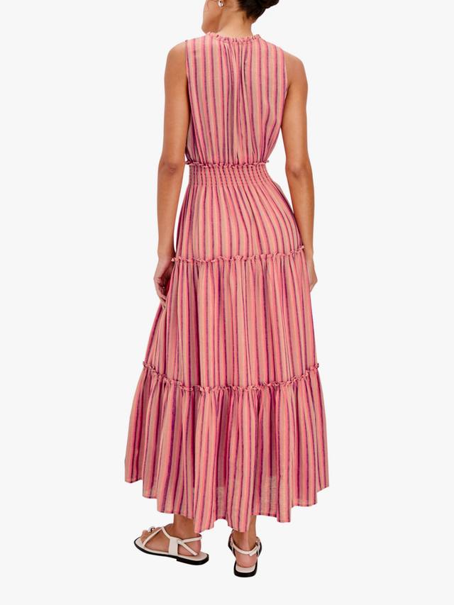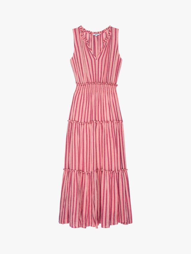 Lou Lou — роскошное платье из смесовой льняной ткани с присборенной талией. Это макси-платье имеет V-образный вырез и юбку на подкладке с оборками на каждом ярусе.