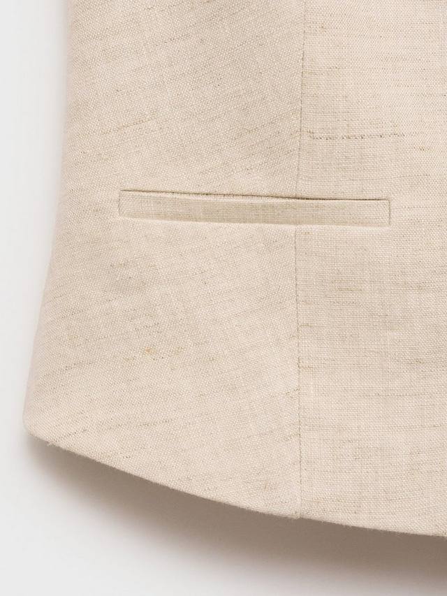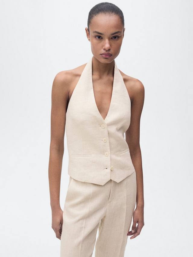 Украсьте свой рабочий гардероб этим льняным жилетом от Mango. Его V-образный вырез и мягкая хлопковая подкладка обеспечивают комфорт и современный стиль, идеально сочетая практичность и индивидуальность для уверенного повседневного стиля.