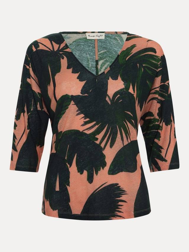 Эта футболка от Phase Eight идеально подходит для повседневного ношения на каждый день. Украшена нежным листочковым принтом – прекрасной альтернативой цветочным мотивам. Футболка с V-образным вырезом и рукавами три четверти выполнена из чистого льна, обеспечивает дышащий комфорт и отлично сочетается с джинсами или шортами.