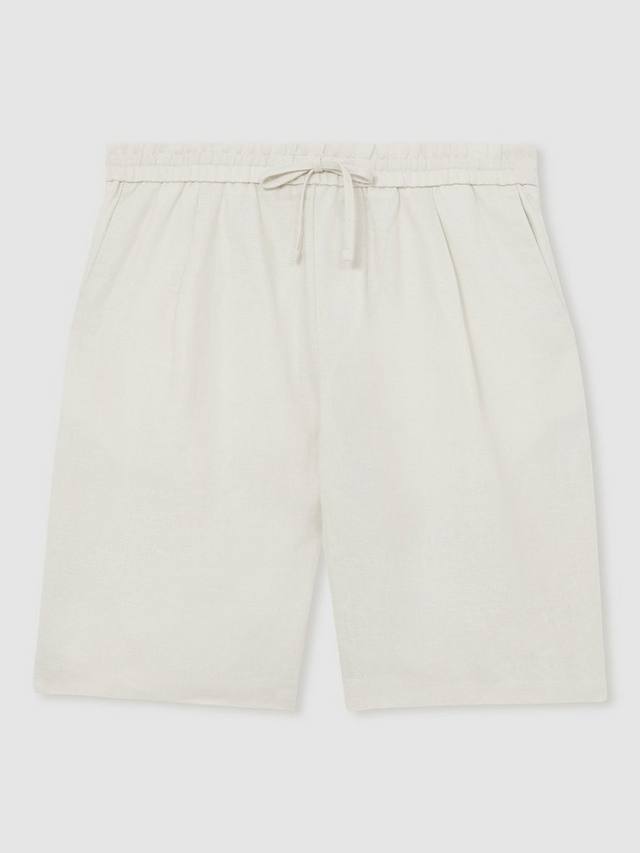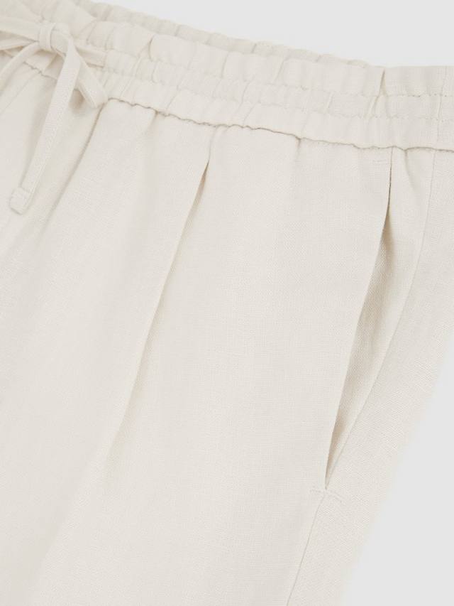 Легкие шорты Reiss Barges из 100% льна идеально подходят для теплой погоды. Они имеют удобный эластичный пояс на шнурке и изящные складки спереди. Накладные карманы по бокам и прорезные карманы с клапанами на пуговицах сзади.