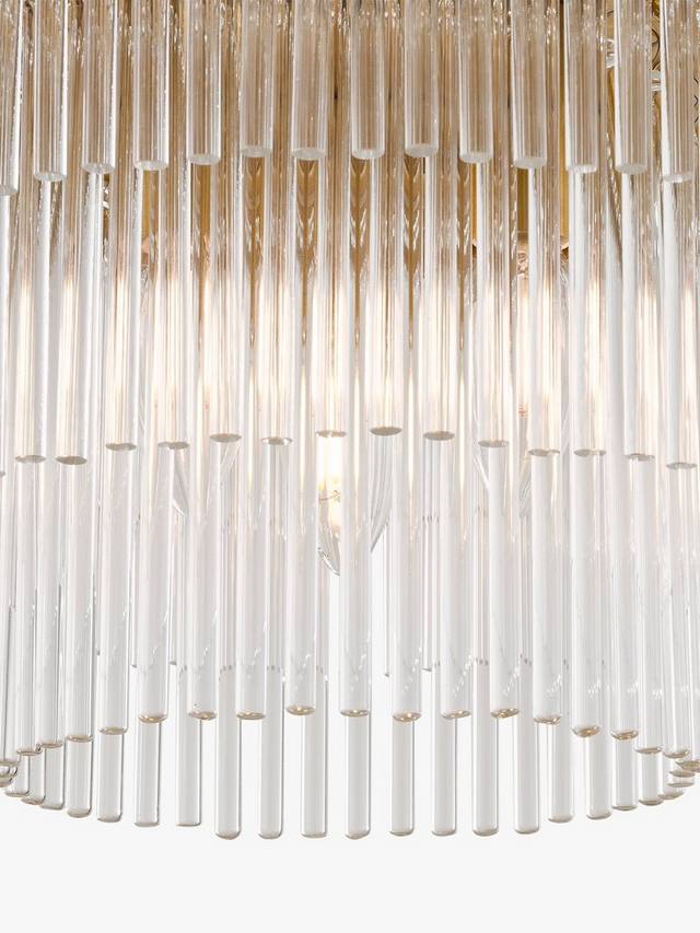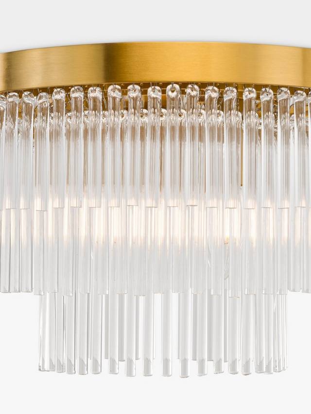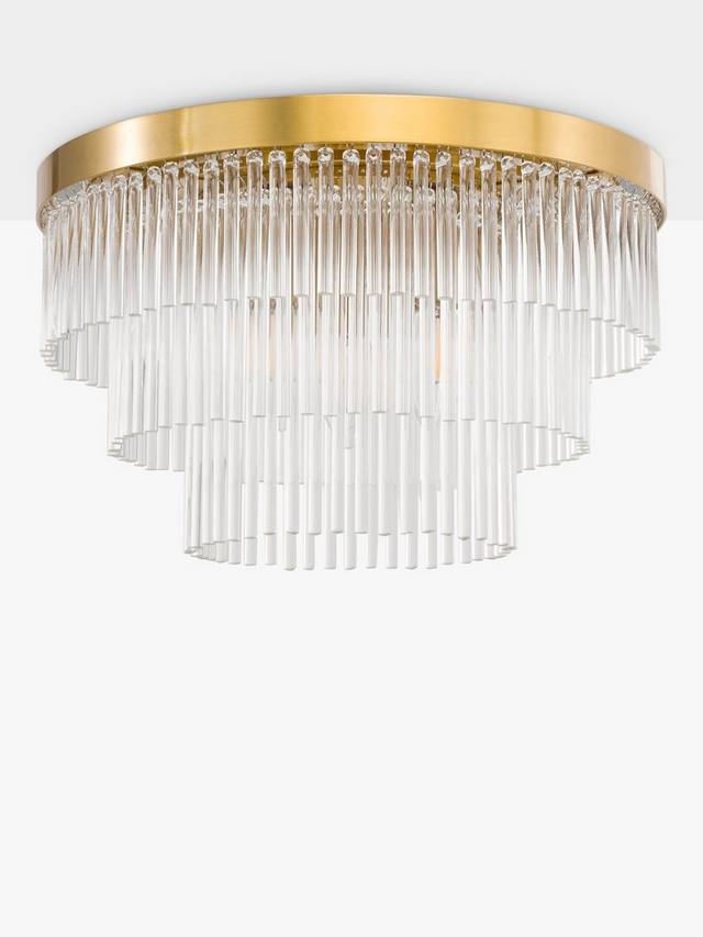 Выразите свой стиль с помощью потрясающего потолочного светильника Shiminista в стиле люстры. Этот потолочный светильник, отделанный теплой матовой латунью со слоями прозрачных хрустальных стержней, станет настоящим центром внимания в комнате, привнося изысканность и элегантность в ваш дом.