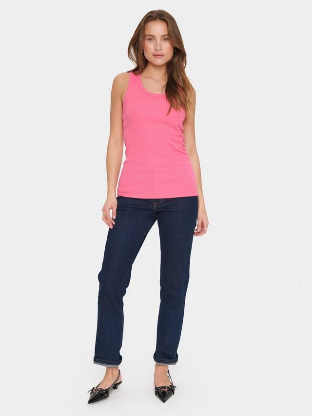 Майка Aster — идеальный базовый топ для вашего гардероба. Без рукавов, с широкими бретелями и круглым вырезом. Облегающий крой майки выполнен из мягкого и эластичного трикотажа с добавлением хлопка.