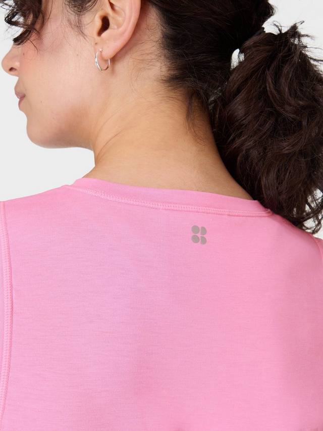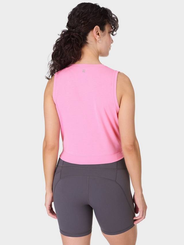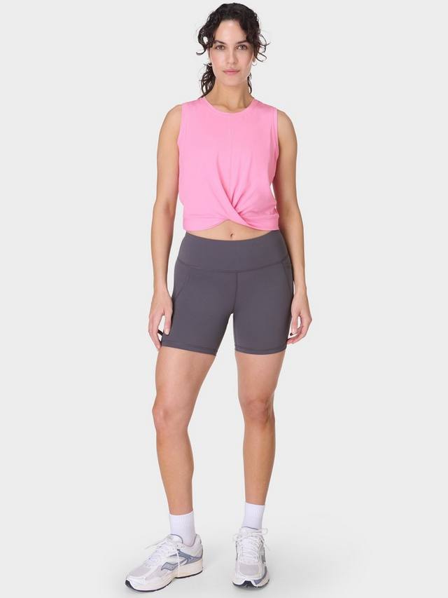 Майка Breathe Easy с изюминкой. Изготовлена из мягкой, влагоотводящей ткани. Свободный, слегка укороченный крой. Спереди — эффектный перекрученный элемент.
