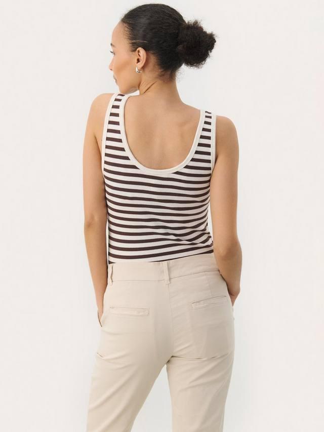 Эта полосатая майка в рубчик из Part Two идеально подходит для ношения с джинсами или юбками. Она изготовлена из мягкой хлопковой смеси с круглым вырезом.
