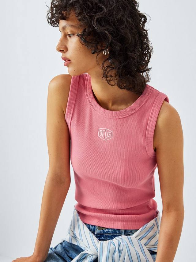 Эта майка в рубчик из плотной хлопковой смеси с добавлением эластичной ткани для комфорта украшена вышивкой миниатюрного щита Deus спереди. Она обработана интенсивной энзимной стиркой.