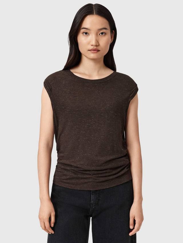 Незаменимая майка от AllSaints из мягкой смесовой вискозы. Круглый вырез и мерцающая текстура делают её отличным вариантом на каждый день.