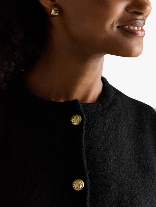 Это трикотажный жилет Holly, обновлённый к новому сезону. Он выполнен из той же роскошной мягкой трикотажной ткани и имеет прямой крой, подчеркивающий фигуру, но теперь он стал ещё более элегантным благодаря пяти металлическим пуговицам на стержнях спереди. Каждая пуговица имеет тиснение, что является знаком качества и внимания к деталям, которые всегда уделяются нашим стилям.