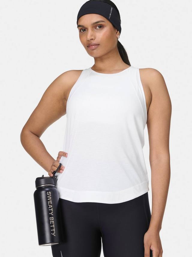 Майка для бега. Легкая ткань, влагоотводящая и немного эластичная. Облегающий крой и спинка-борцовка обеспечивают свободу движений. Новые сетчатые детали спереди и сзади. Светоотражающий логотип.