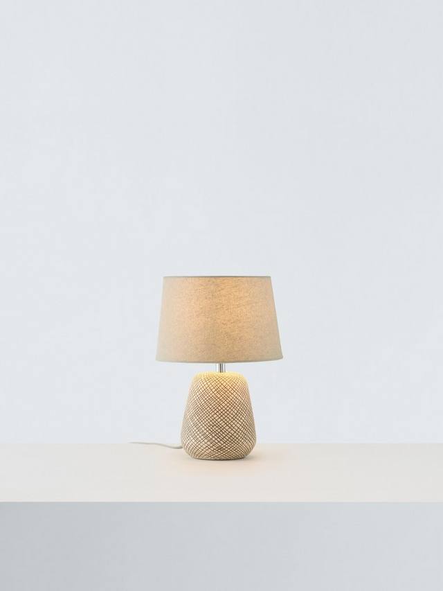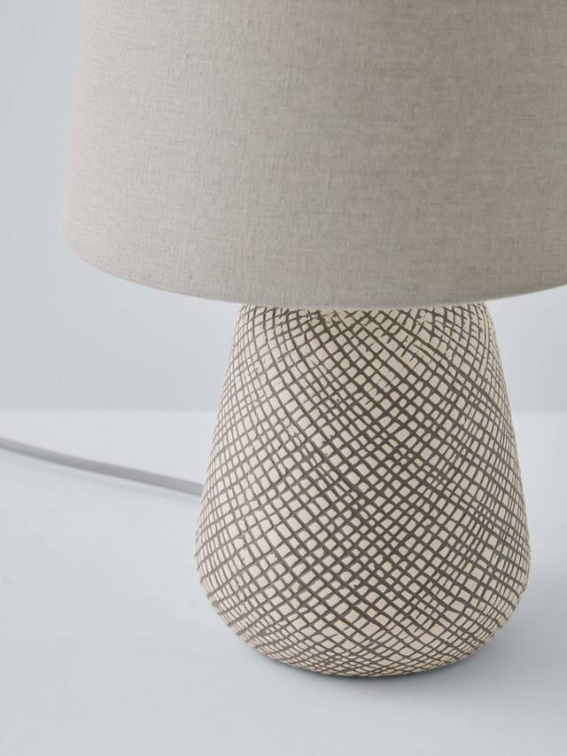 Эта очаровательная компактная настольная лампа оснащена тщательно проработанным керамическим основанием с гравировкой, которое добавит тактильный акцент в интерьер вашего дома. Дополненный соответствующим льняным абажуром, его привлекательный чистый и естественный профиль будет элегантно смотреться на журнальных столиках и столиках.