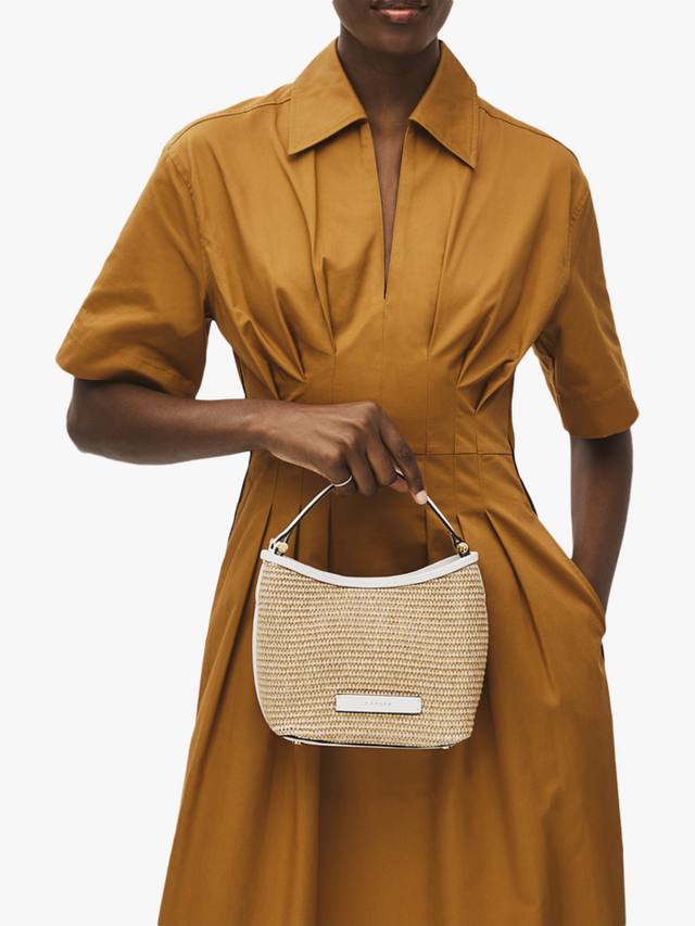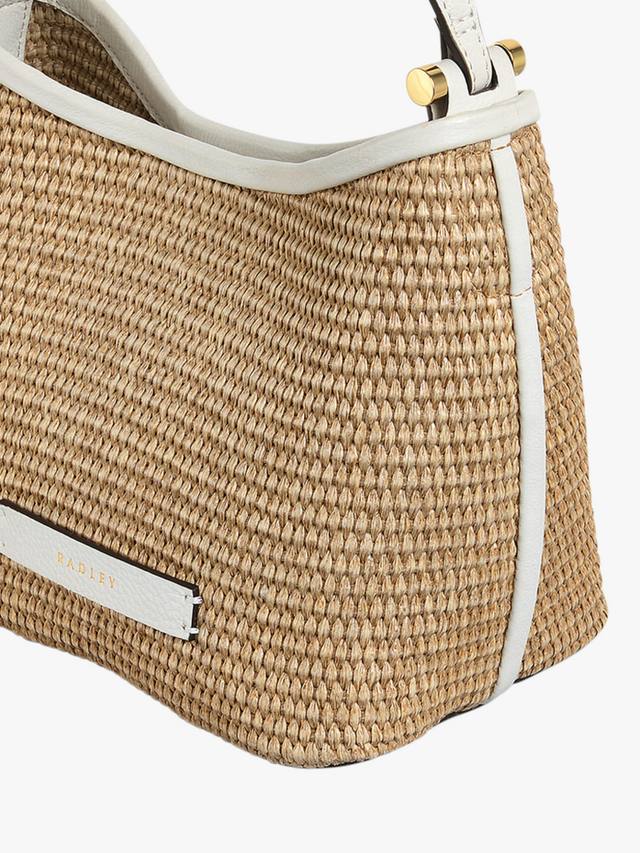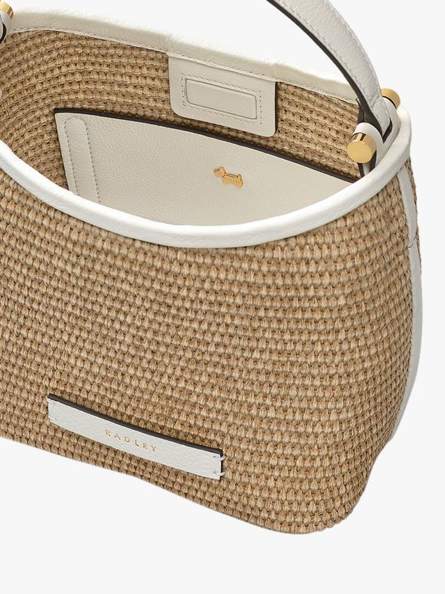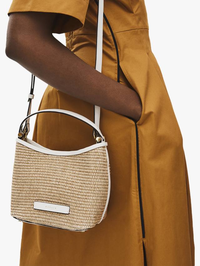 Функциональность, стиль и фактурные материалы – эта версия сумки-ведра Bathurst Mews от Radley сочетает в себе всё. Изготовленная из плетеной рафии и контрастной кожаной отделки, эта летняя сумка-ведро в форме ведра удобно носить в руке или на боку благодаря длинному съёмному ремню.