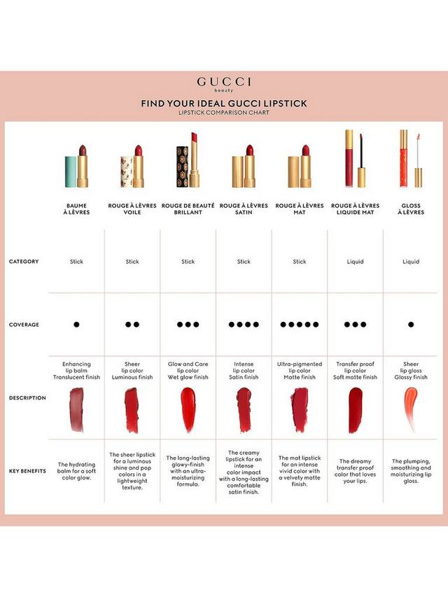Помада Rouge à Lèvres Matte дарит губам яркий и насыщенный цвет, дарит ощущение мягкости и бархатистости, а её текстура шёлковая и комфортная, не пересушивая губы и не размазываясь. Палитра коллекции включает насыщенные нюдовые, оранжевые и розовые, красные, фиолетовые и величественный зеленый оттенки, вдохновленные особым тоном, который можно увидеть в нарядах Алессандро Микеле, представленных на подиуме.