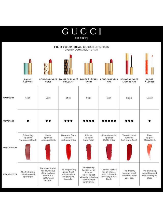 Помада Rouge à Lèvres Matte дарит губам яркий и насыщенный цвет, дарит ощущение мягкости и бархатистости, а её текстура шёлковая и комфортная, не пересушивая губы и не размазываясь. Палитра коллекции включает насыщенные нюдовые, оранжевые и розовые, красные, фиолетовые и величественный зеленый оттенки, вдохновленные особым тоном, который можно увидеть в нарядах Алессандро Микеле, представленных на подиуме.