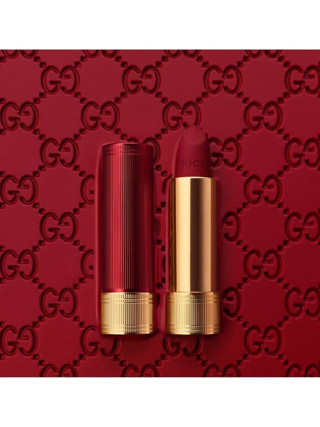 Gucci Beauty Rouge à Lèvres Matte — это коллекция насыщенных помад с стойким матовым финишем. Эта матовая помада, специально разработанная с использованием масел, насыщенных пигментов и гелеобразующих восков, обеспечивает насыщенный цвет и мягкую бархатистость губ в широкой палитре оттенков.