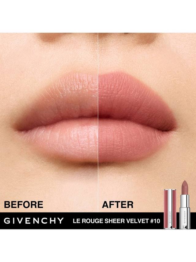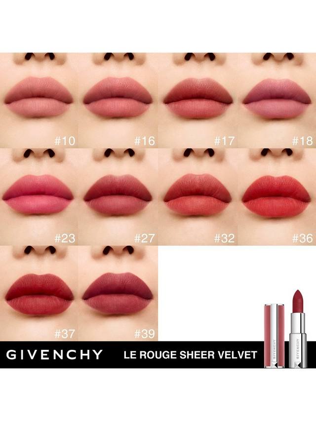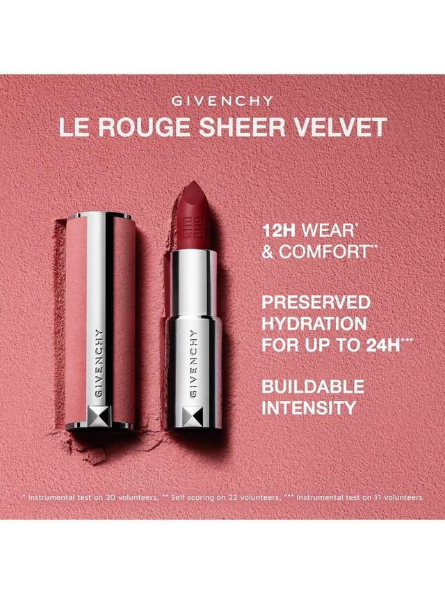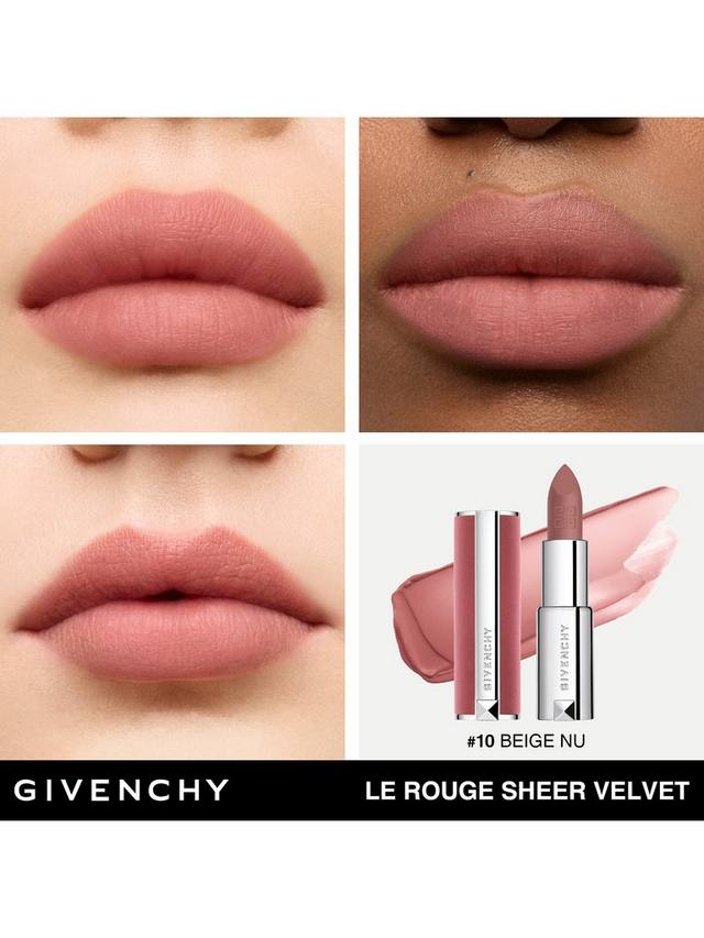 Givenchy представляет Le Rouge Sheer Velvet — новую матовую помаду с эффектом размытия в розовом бархатном футляре со сменным футляром. Представленная в 10 ярких оттенках, помада дарит губам насыщенный цвет и стойкий эффект мягкого фокуса.