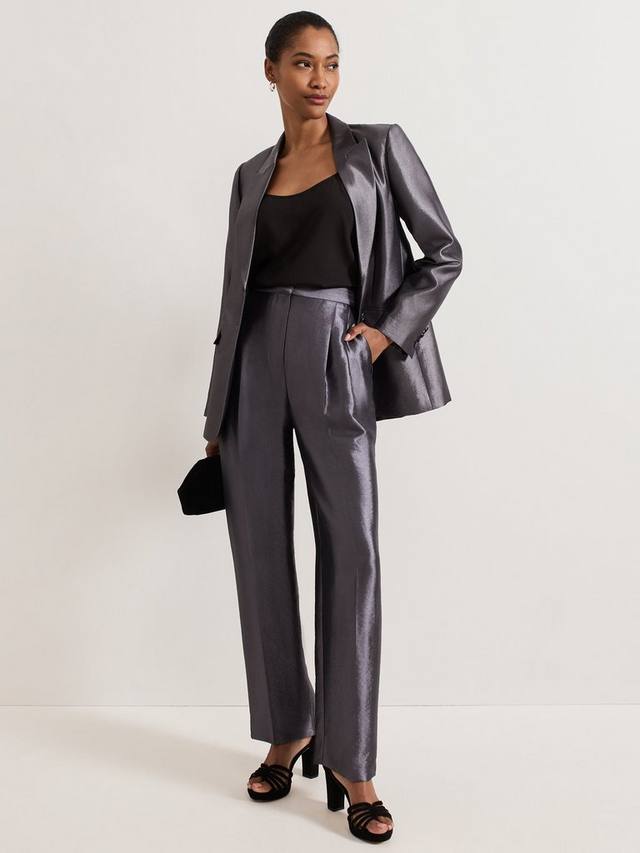 Брюки Sade с металлическим блеском отличаются изящной складкой спереди и прямым силуэтом. Сочетайте их с элегантным пиджаком, чтобы создать современный женственный образ, который идеально подходит как для работы, так и для ужина.