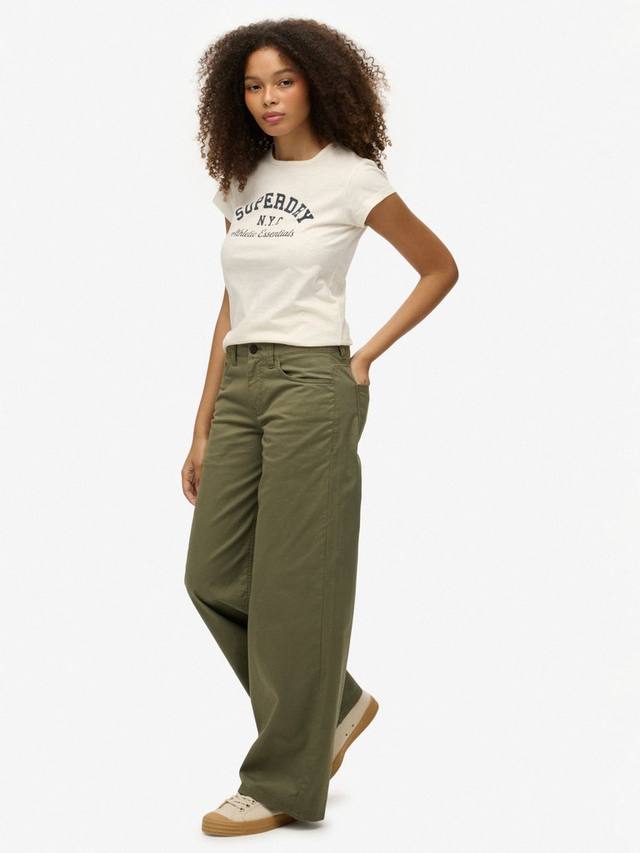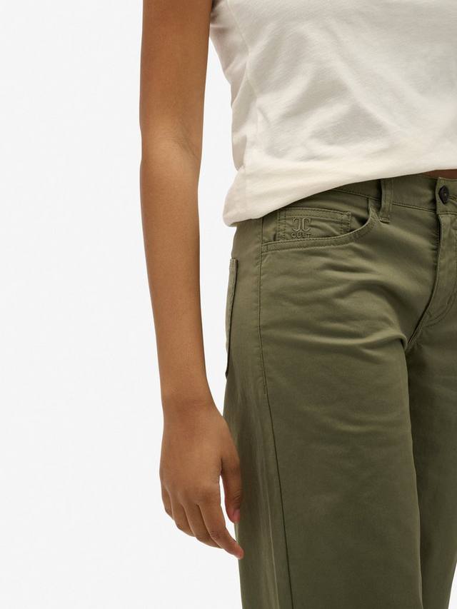 Идеальное сочетание современного и уличного стиля. Брюки-чиносы средней посадки с широким кроем и элегантным фирменным стилем созданы экспертами. Они создают привлекательный силуэт, который легко подобрать к новому сезону.