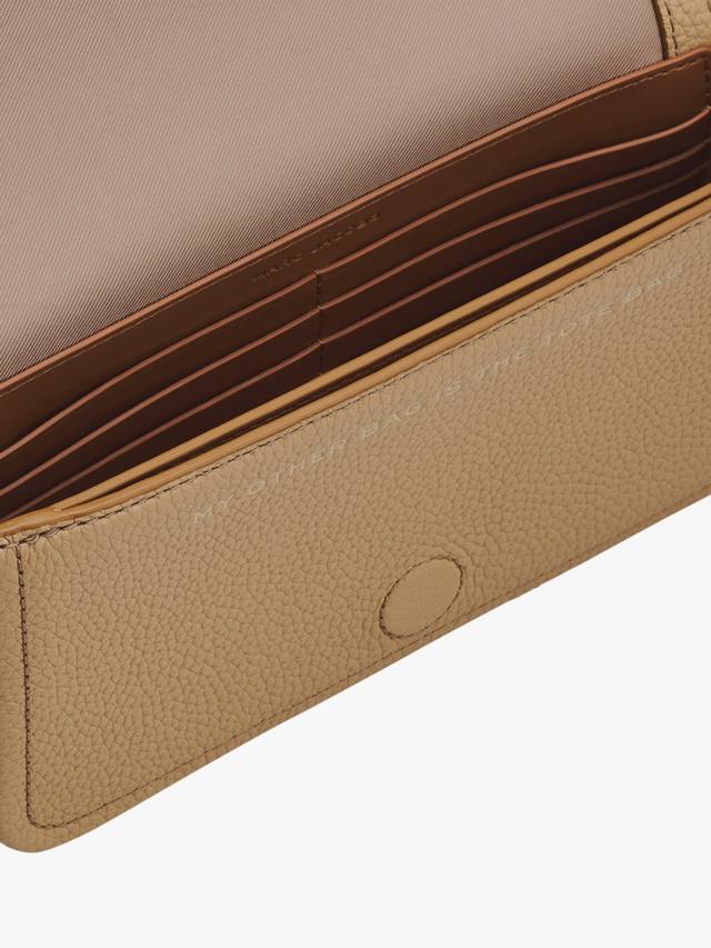 Мини-сумка, яркий образ. Этот силуэт через плечо вдохновлён бестселлером Marc Jacobs и украшен тиснёной надписью My other bag is the tote bag (Моя другая сумка — это сумка-тоут) на внутренней стороне. Каждая сумка, изготовленная из натуральной кожи, имеет фирменный логотип и один накладной карман и восемь отделений для карт. Носите сумку как клатч или прикрепите регулируемый съёмный ремешок с логотипом, чтобы освободить руки.