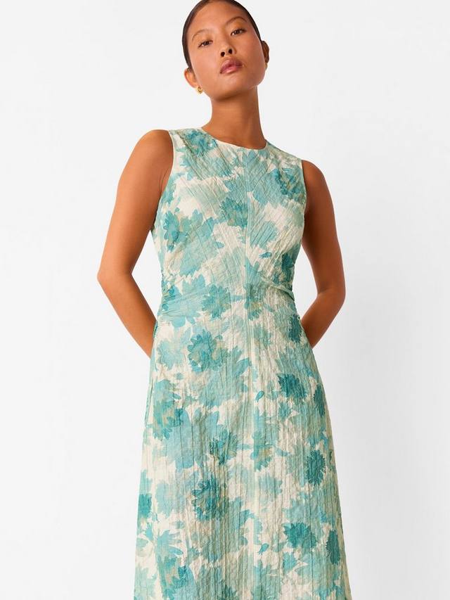 Доказательство того, что простой А-силуэт всегда в тренде. Это платье миди без рукавов из хлопковой смеси от Whistles с простым круглым вырезом и цветочным принтом – настоящий прорыв в любом сезоне.
