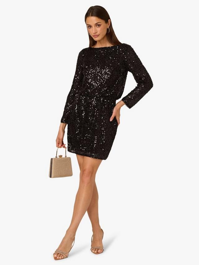 Сияйте уверенно в этом мини-платье Adrianna Papell. Мерцающие пайетки играют на свете при каждом движении. Современный прямой крой и вырез лодочка создают непринужденный образ для вечеринок, где так важны воспоминания.