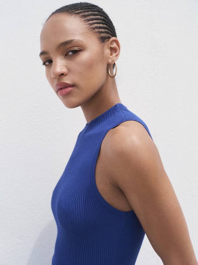 Mango представляет короткое платье с расклешенной юбкой из мягкой вискозной ткани. Платье без рукавов и с классическим круглым вырезом идеально подходит для походов по делам или на поздний завтрак, добавляя комфорт и очарование вашему дню без лишних хлопот.