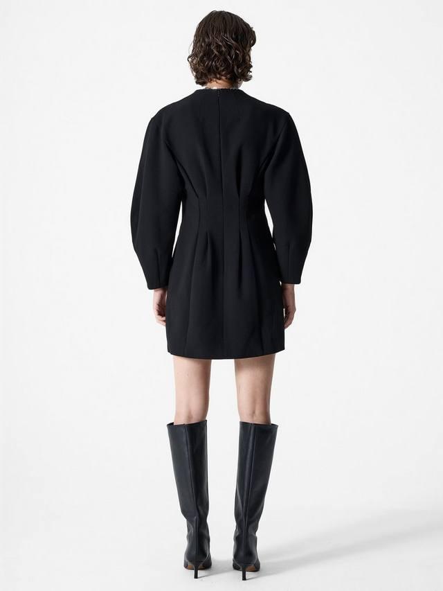 Непринужденно смелое и, несомненно, шикарное, платье-халат Azra Twill сочетает в себе глубокий V-образный вырез и эффектные рукава-фонарики с укороченными складками, создавая элегантный и структурированный силуэт.
