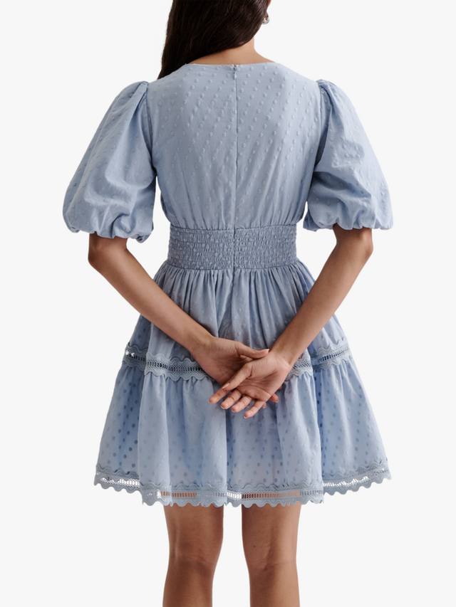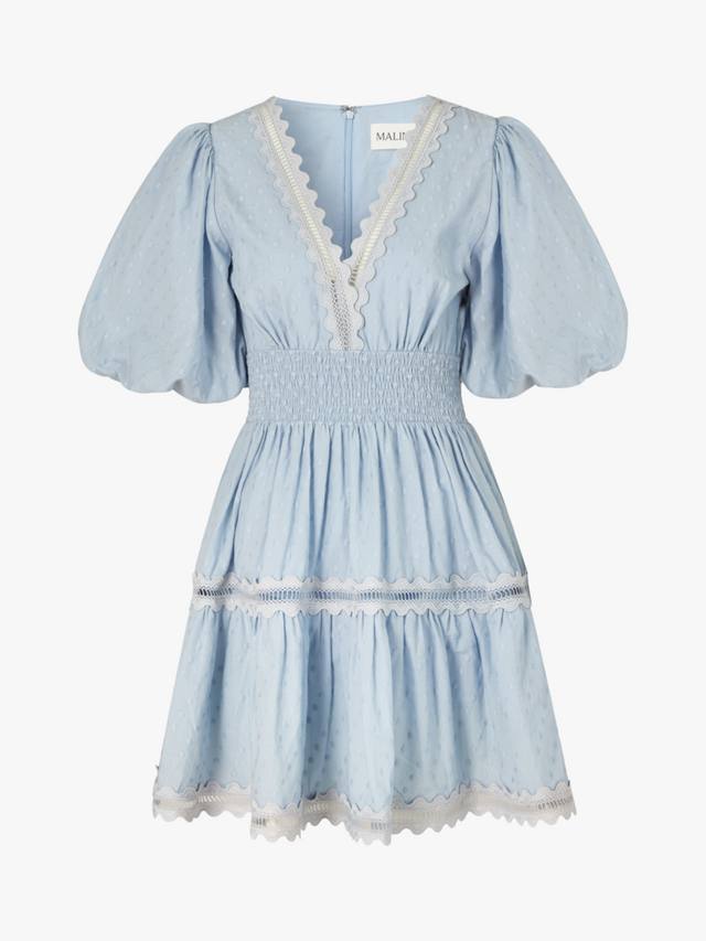 Очаровательное мини-платье со стильной вышивкой, присборенной талией для комфорта, дополненное V-образным вырезом и короткими рукавами-буфами, идеально подходит для любого весеннего или летнего случая.
