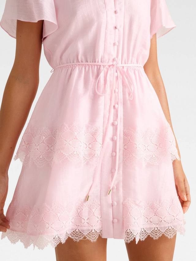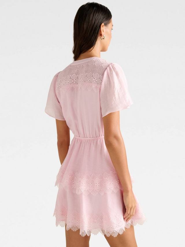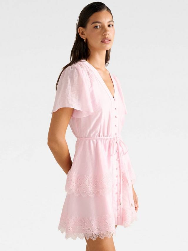Приталенное мини-платье Forever New с расклешенным лифом станет изюминкой любого торжества. Роскошная ткань, продуманная до мелочей, включая V-образный вырез и кружевную отделку, обеспечивает комфорт.