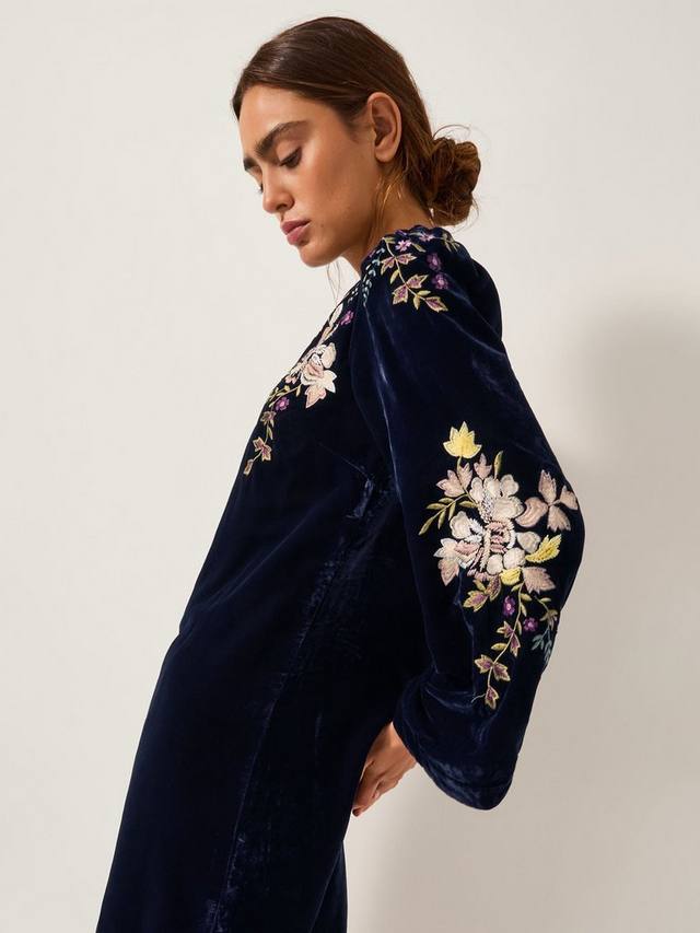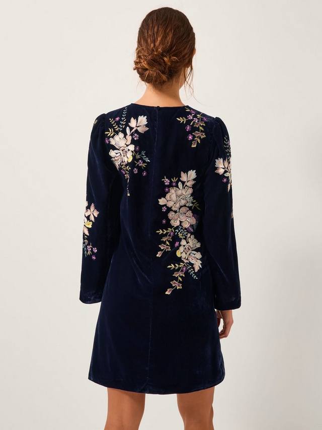 Это мини-платье из бархата добавит яркости вашему дню благодаря продуманной вышивке, круглому вырезу и удобной застежке-молнии. Прямой крой и длинные рукава обеспечивают комфорт, делая его незаменимым нарядом для любого дня.