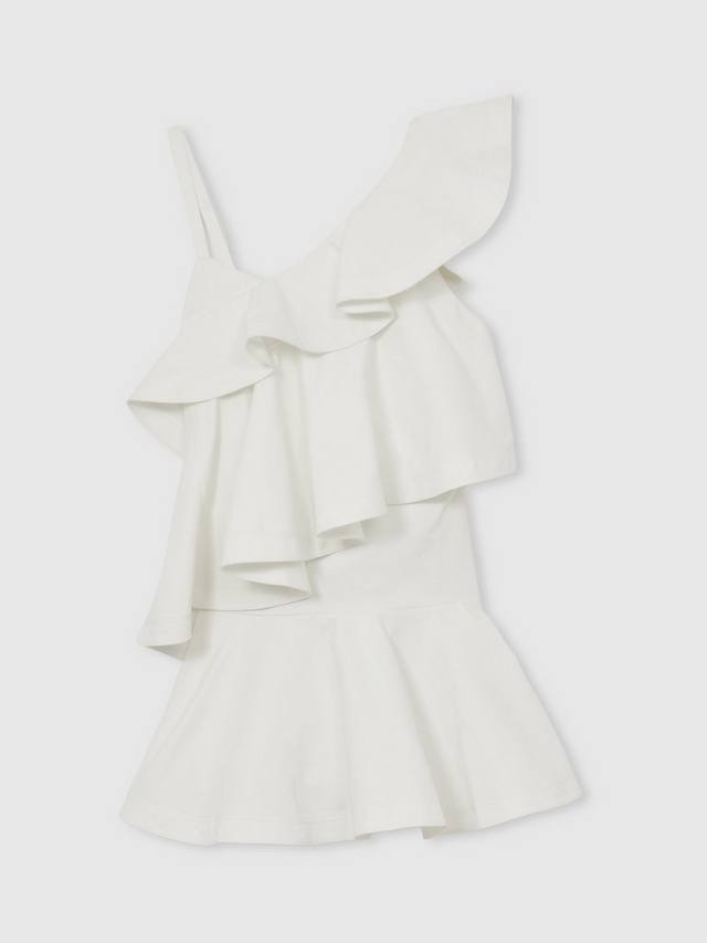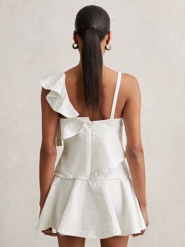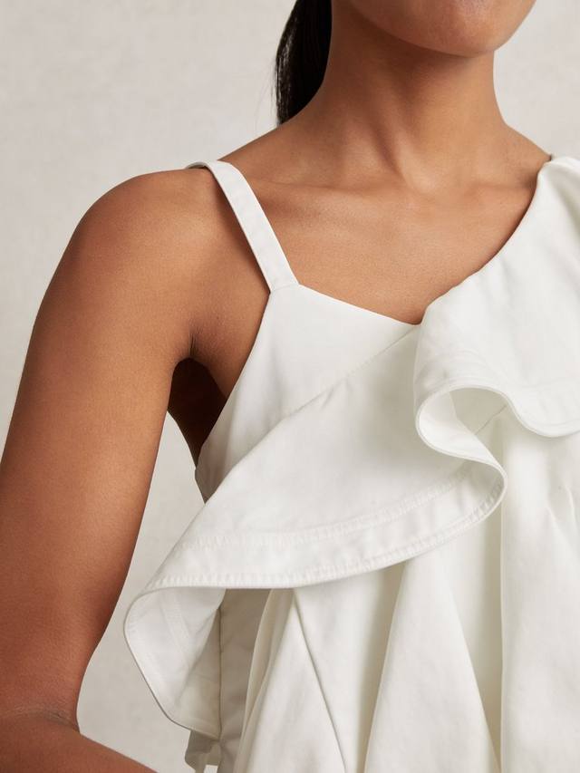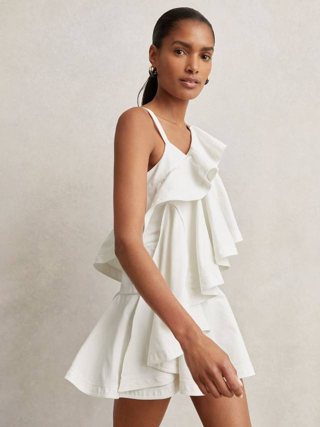 Это мини-платье от Reiss, выполненное из хлопка, станет отличным выбором благодаря оборкам. Асимметричный вырез делает эту модель на бретельках привлекательной без принтов и акцентов.