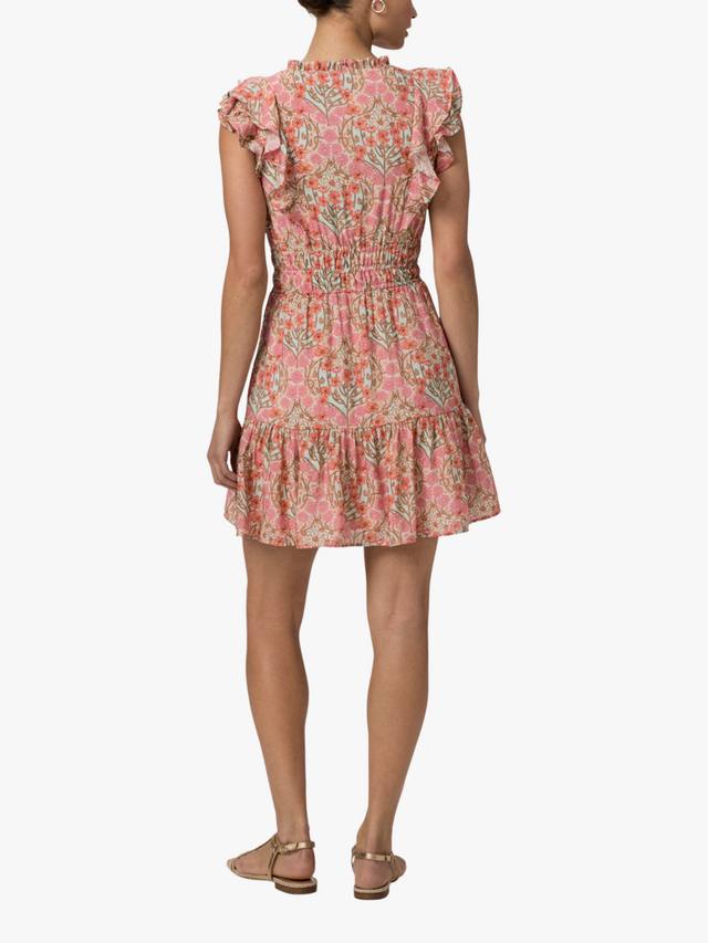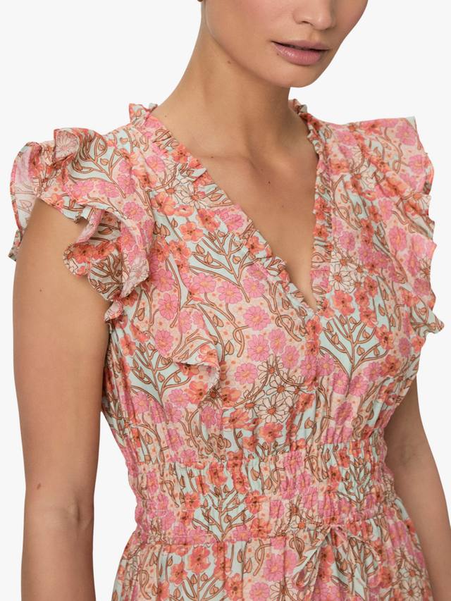 Это мини-платье с короткими рукавами и цветочным принтом, выполненное из лёгкого и воздушного текстурированного вискозного материала, имеет оборки на рукавах и вырезе, эластичный пояс с завязкой и многоярусную юбку. Сочетайте платье Muriel с сандалиями днём и каблуками вечером, чтобы создать непринуждённый и шикарный образ.