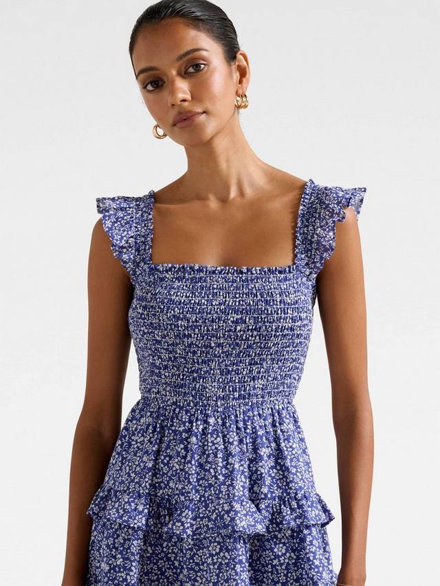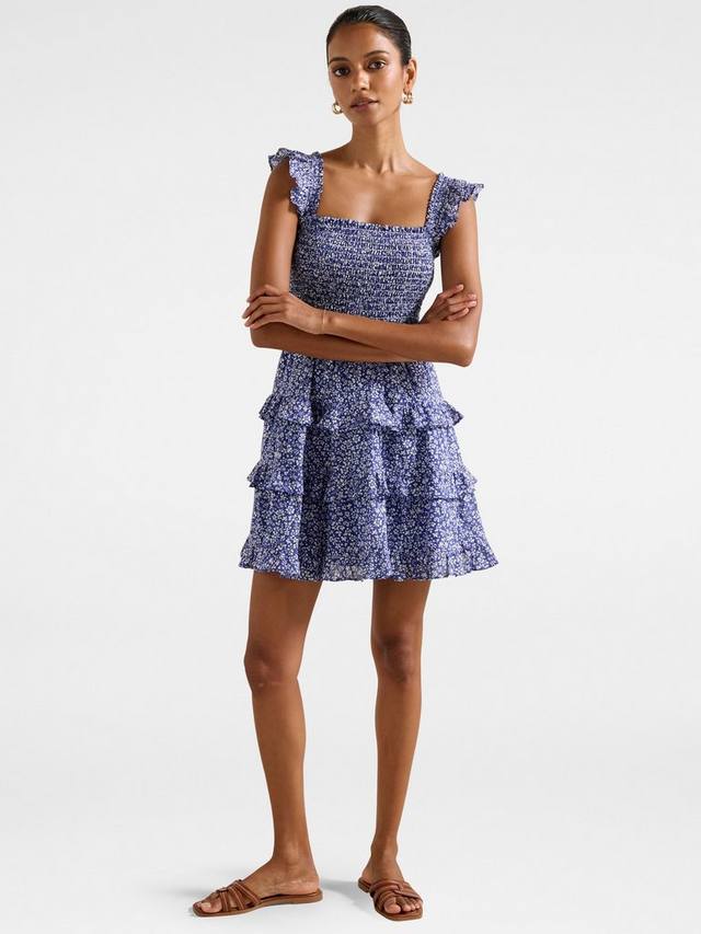 Это мини-платье от Forever New с многоуровневым кроем и расклешенной юбкой выполнено из лёгкого хлопкового материала. Благодаря модному квадратному вырезу и рукавам-крылышкам, оно очаровывает своей непринуждённостью благодаря цветочному принту.
