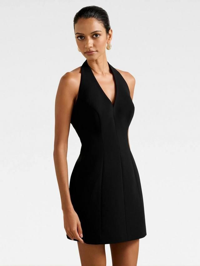 Это миниатюрное платье с расклешенным лифом и вырезом-халтер придаст энергии любой вечеринке благодаря продуманному крою, обеспечивающему комфорт. Эффектный, но в то же время непринужденный, простой дизайн позволит вам выразить свой стиль, независимо от того, любите ли вы выделяться или предпочитаете простоту.