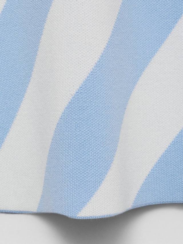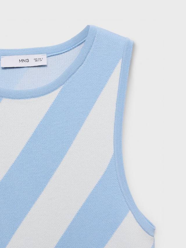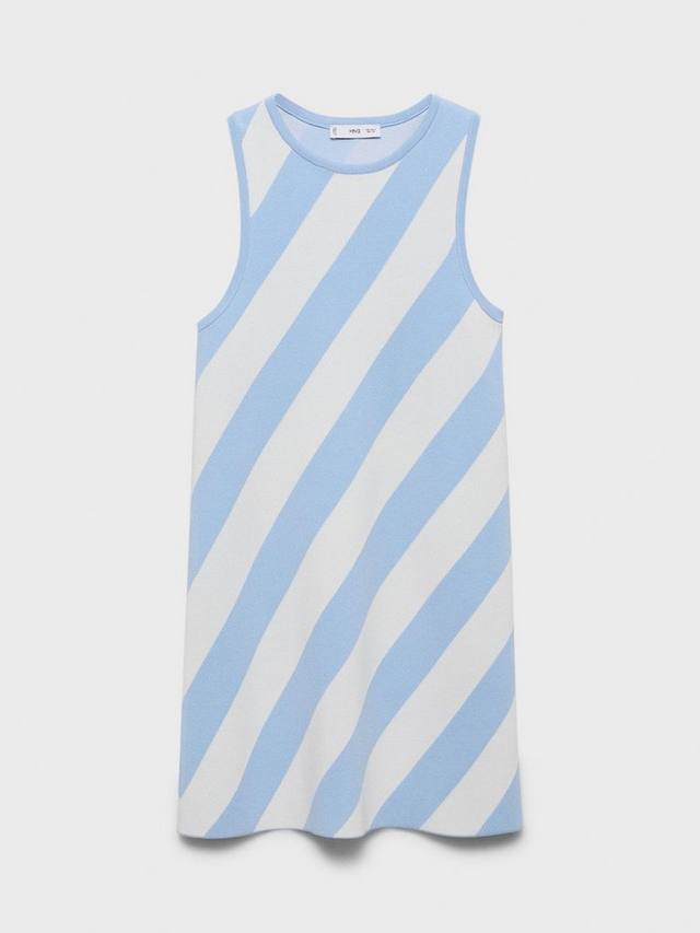 Mango представляет мини-платье из мягкой смесовой вискозы с диагональными полосками и прямым силуэтом без рукавов. Круглый вырез горловины и свободная посадка придают повседневным ситуациям легкость и очарование.
