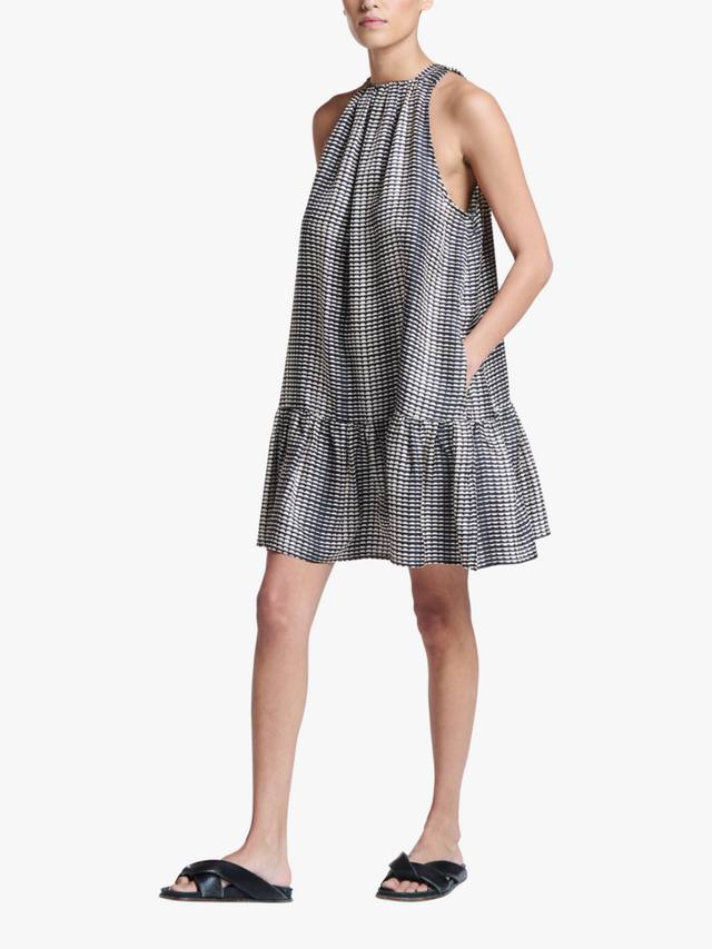 Платье Adana, сшитое из 100% шелкового твила, представляет собой обновлённую мини-версию нашего бестселлера Ibiza. Высокий вырез, изящные карманы и заниженная талия на резинке делают Adana идеальным дневным платьем для отпуска, дополненным простыми мюлями. Эта лёгкая модель украшена сдержанным принтом солнечный нуар.
