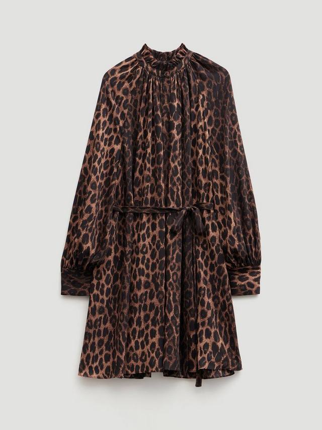 Возьмите это мини-платье с высоким воротом и леопардовым принтом в любой день или вечер. Струящийся силуэт дарит комфорт и свободу, а длинные рукава и продуманные детали сделают каждый момент более веселым и индивидуальным.