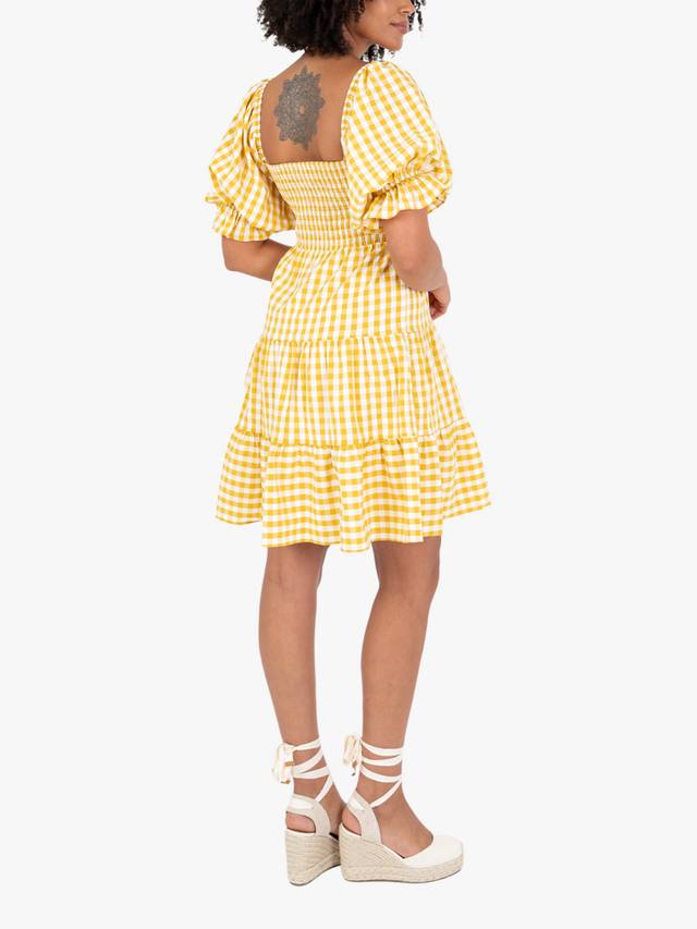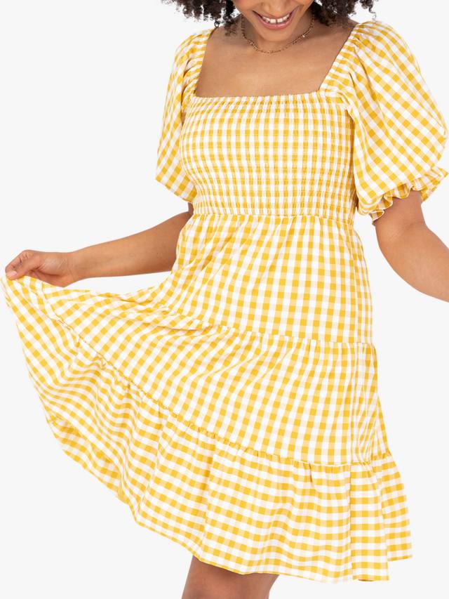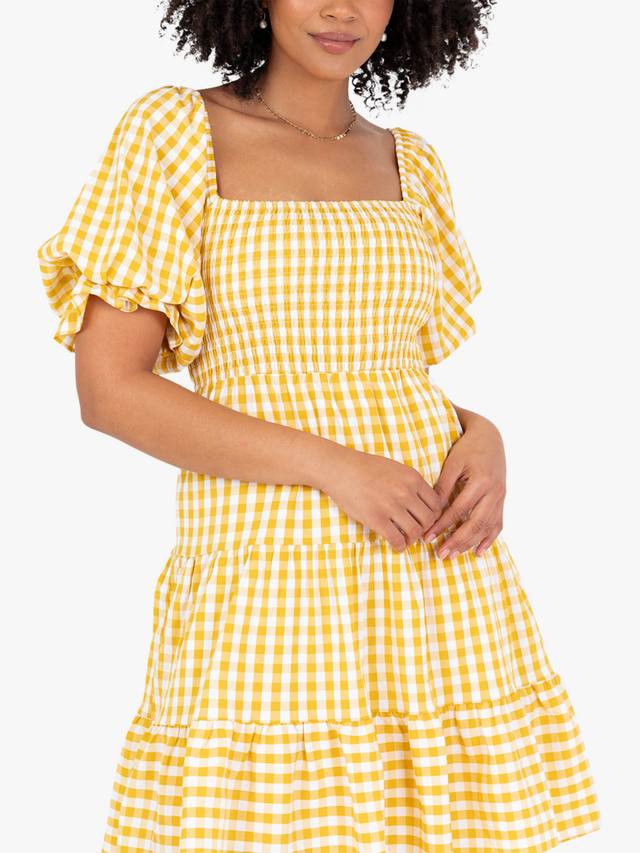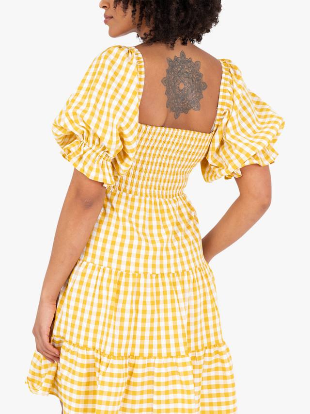 Представляем изысканную модель Milkmaid Mini, идеально подходящую для вашего летнего гардероба. Эта модель с классическим рисунком в клетку гингем и мини-силуэтом воплощает эстетику деревенского стиля. Квадратный вырез горловины достигается за счёт присборенного лифа, дополненного эластичными плечами, которые плавно переходят в эффектные короткие рукава-буфы с эластичными манжетами и изящными оборками. Многоярусная мини-юбка идеально подходит для разгара лета, будь то посиделки с бокалом после работы или прогулки в парке в выходные. Сочетайте с сандалиями или кроссовками для создания непринужденного, но стильного образа.