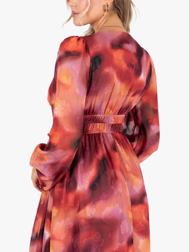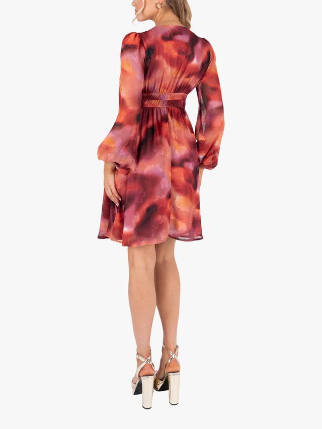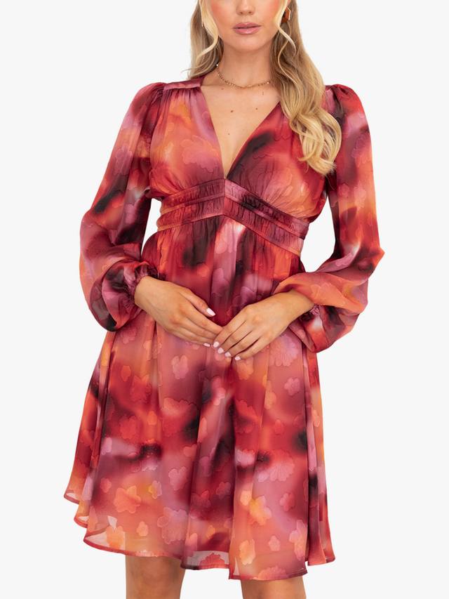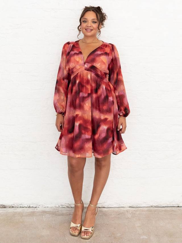 Это платье из шифона с цветочным выжженным узором, V-образным вырезом, струящимися рукавами, эластичной талией в стиле ампир и кокетливой, слегка присборенной мини-юбкой. Просто наденьте и вперед!