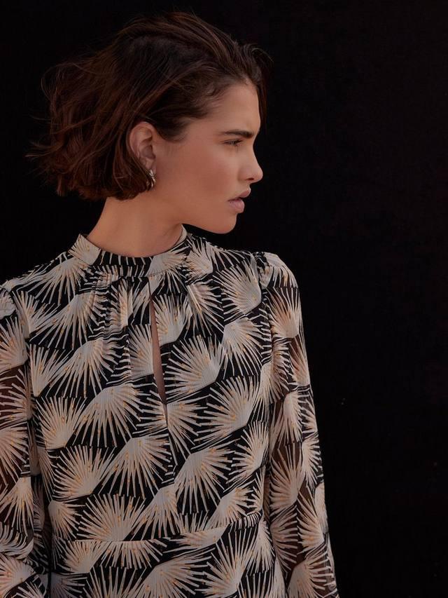Незаменимая вещь в гардеробе. Это мини-платье с длинными рукавами от Mint Velvet, высоким воротом и геометрическим принтом.