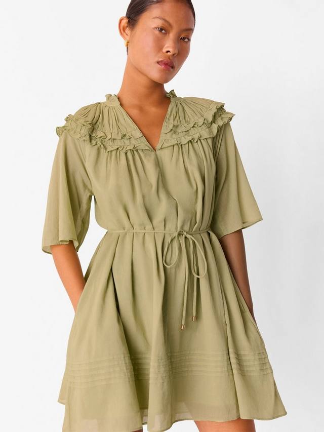 Это мини-платье от Whistles, универсально подчеркивающее фигуру, с расклешенным кроем, выполнено из мягкого и прочного хлопка. Благодаря V-образному вырезу и рукавам до локтя, оно идеально подходит для носки. Минимальные детали обеспечивают комфорт и удобство.