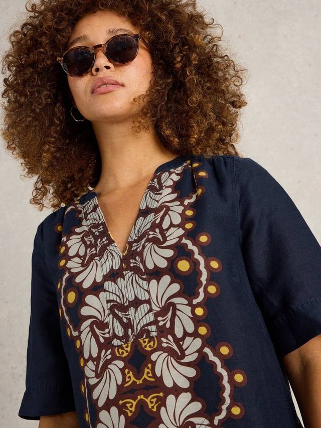 Это мини-платье А-силуэта от White Stuff выполнено из 100% льна, что создает ощущение свежести и легкости. Классический крой, округлый вырез и короткие рукава гарантируют, что если вы любите цветочные принты, вам это обязательно понравится.
